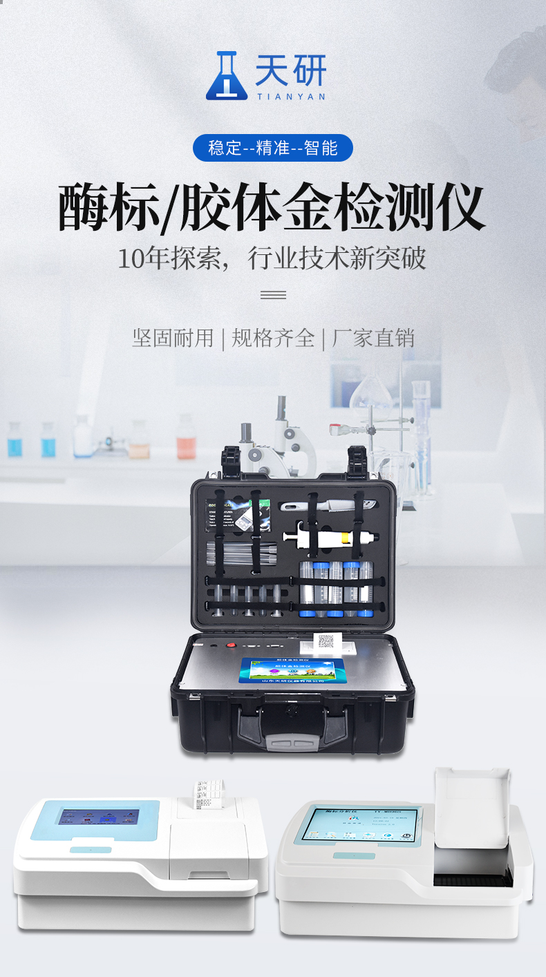 该胶体金检测仪适用于猪、鸡、鸭、羊、牛、牛奶等畜禽肉产品中兽药残留,包括抗生素类残留、瘦肉精激素类残留和水产品有毒有害物质的现场快速筛查定及性定量检测。 该多功能兽药残留检测仪为集成化肉品安全快速检测分析设备,可广泛应用于畜牧养殖场、屠宰场、食品肉产品深加工企业、食药监局、检验检疫部门、卫生部门、高教院校、科研院所、农业部门等单位使用。