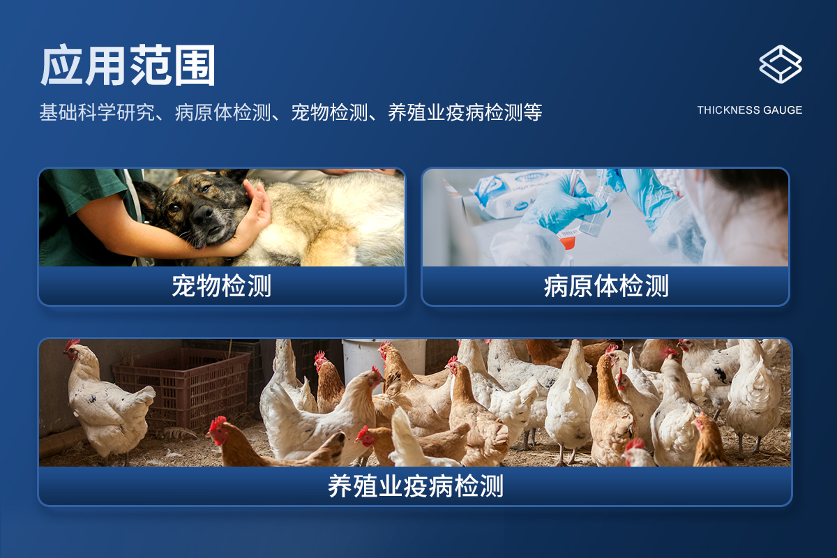 基础科学研究、病原体检测、宠物检测、养殖业疫病检测(牛羊、鸡鸭鹅等禽类、鱼虾等水产)