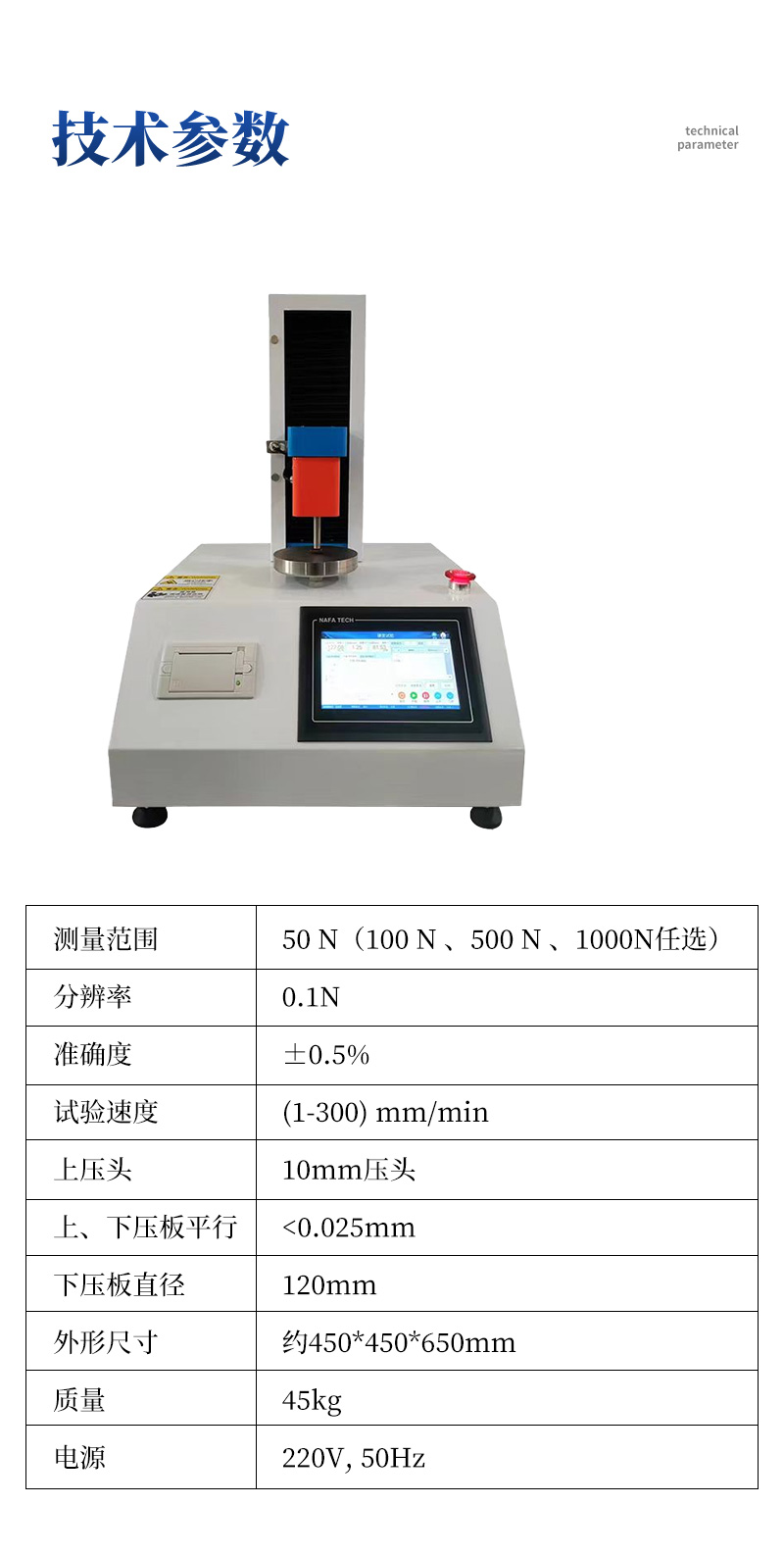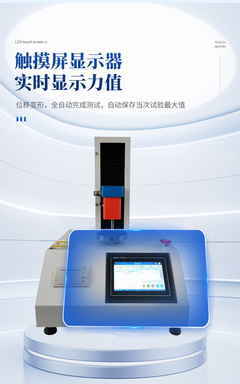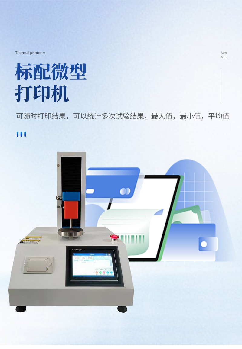 | 1、触摸屏实时显示力值、位移、变形量,全自动测试并自动保存试验最大值;实时显示试验曲线、速度、变形等参数。 2、采用高精度全数字调速系统与精密减速机,驱动精密丝杠副,试验速度范围宽、运行平稳。 3、搭载高精度传感器与专业测控软件,测试精度高、量程广、操作简便。 4、标配微型打印机,支持即时打印,可统计多次试验的最大值、最小值、平均值。 5、选配电脑后,曲线与数据同屏显示,力/时间/距离同步采集;支持数据无限存储、A4报告打印。 |